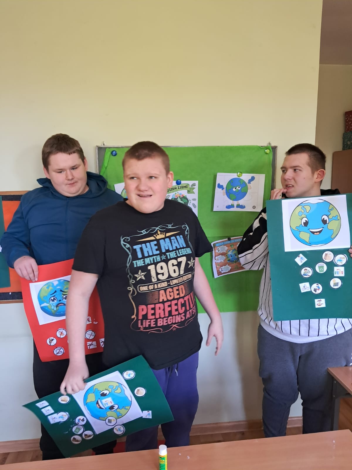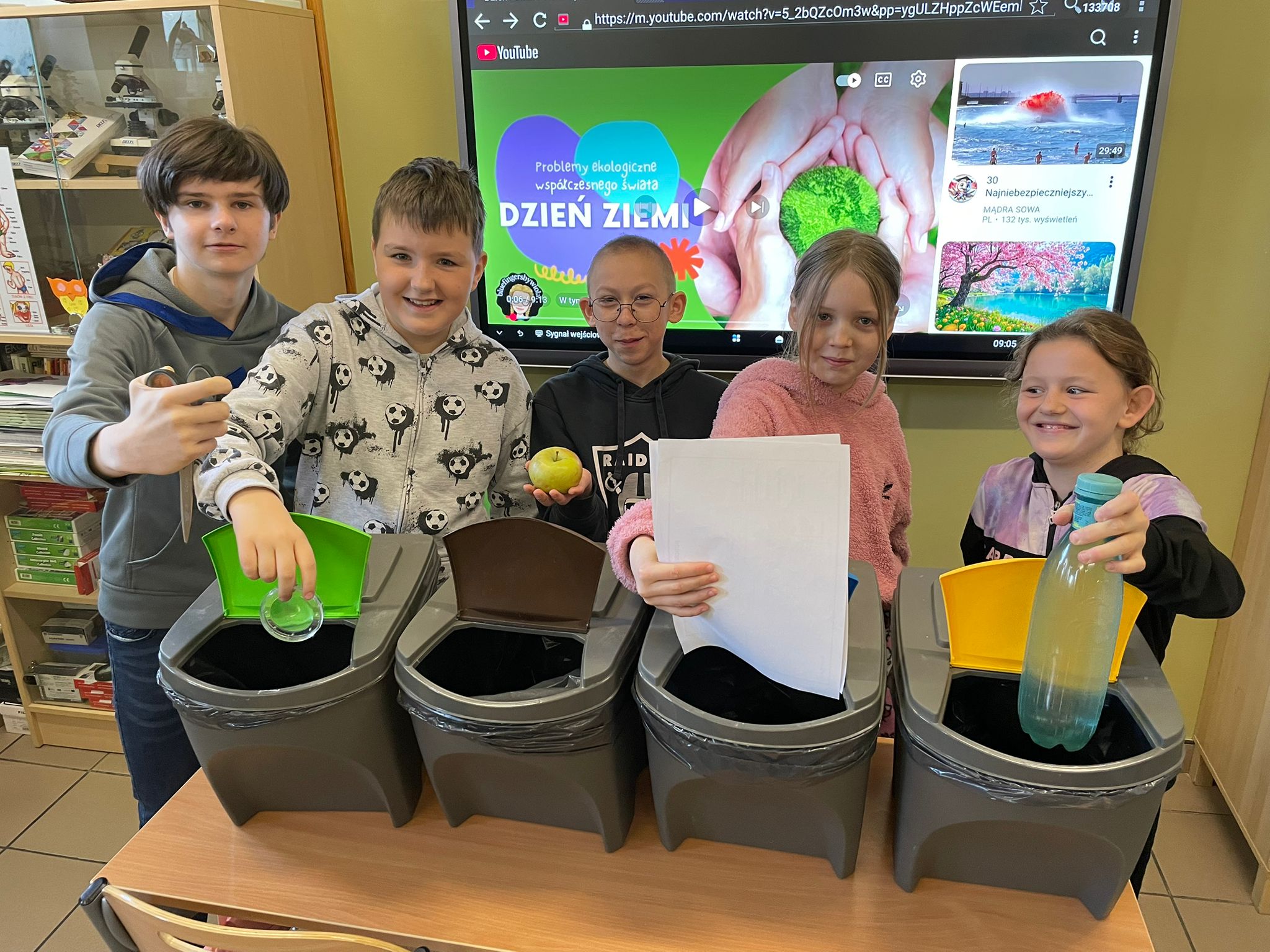 Uczniowie segregują śmieci wg frakcji, wykonują karty pracy związane z segregacją odpadów, sadzą żonkile. Młodsi uczniowie prezentują wykonane przez siebie modele planety z masy solnej.