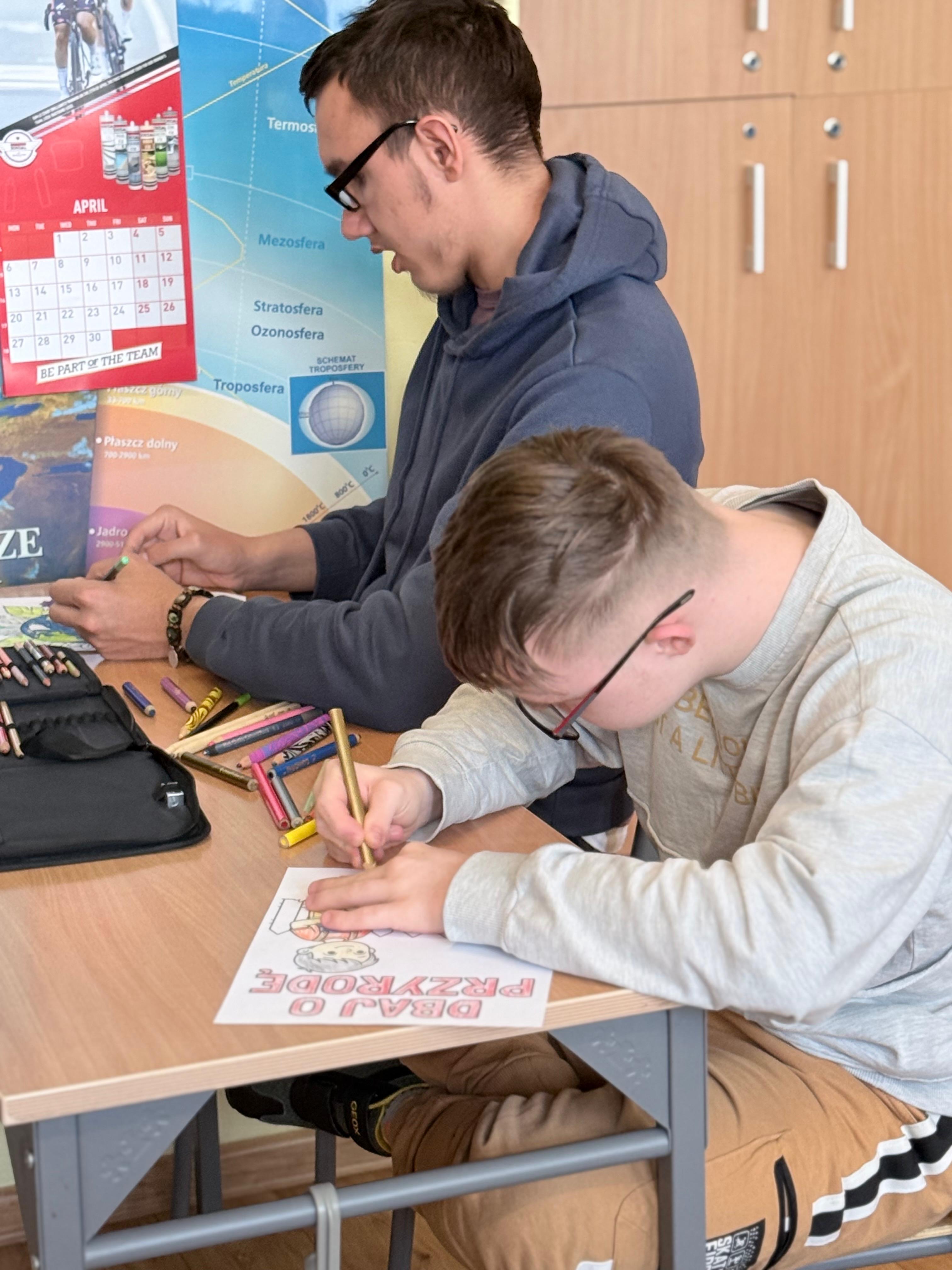 W młodszych klasach uczniowie wykonali projekt Błękitnej Planety z masy solnej. Utrwalali proekologiczne zachowania: segregowanie śmieci i oszczędność wody.