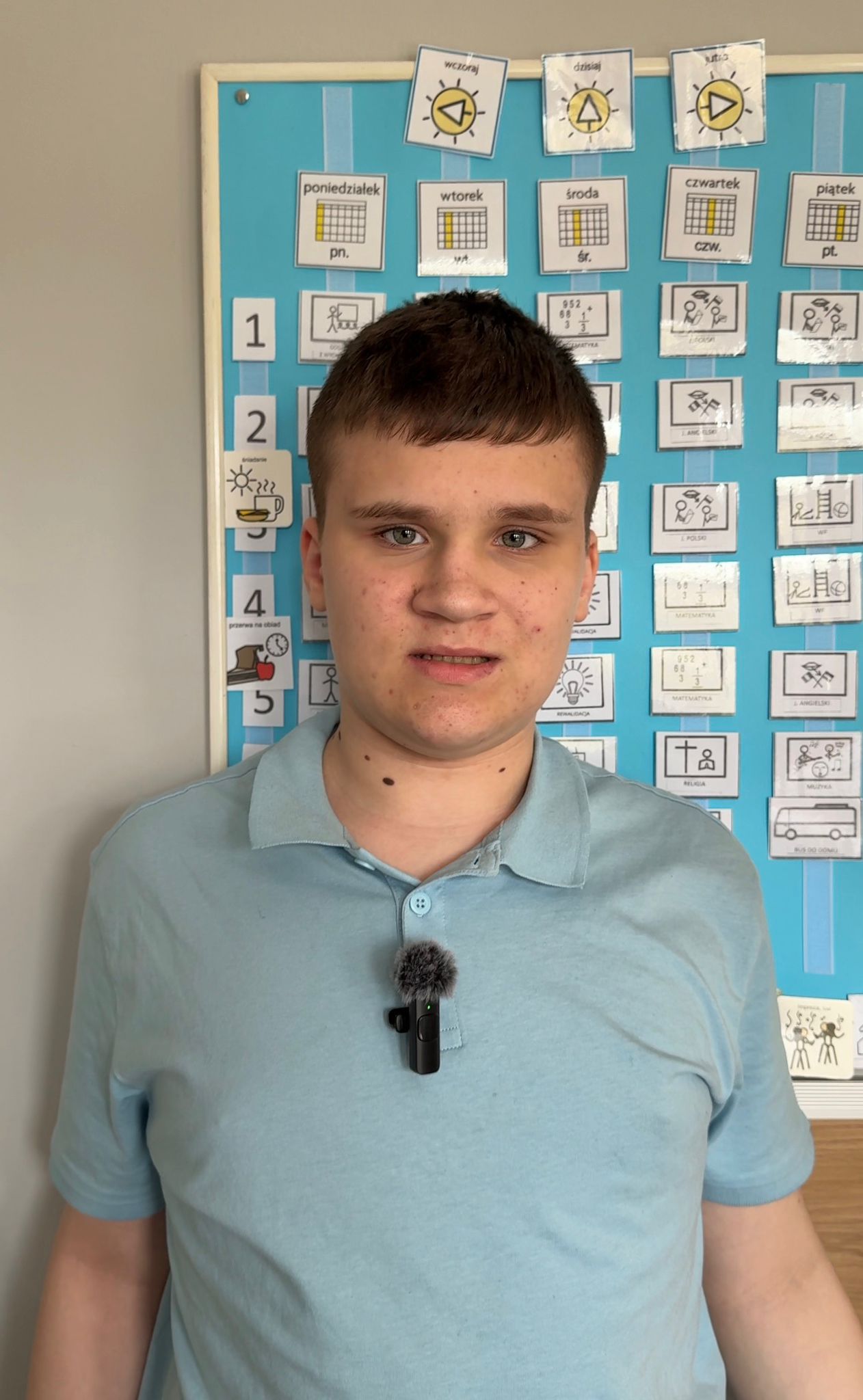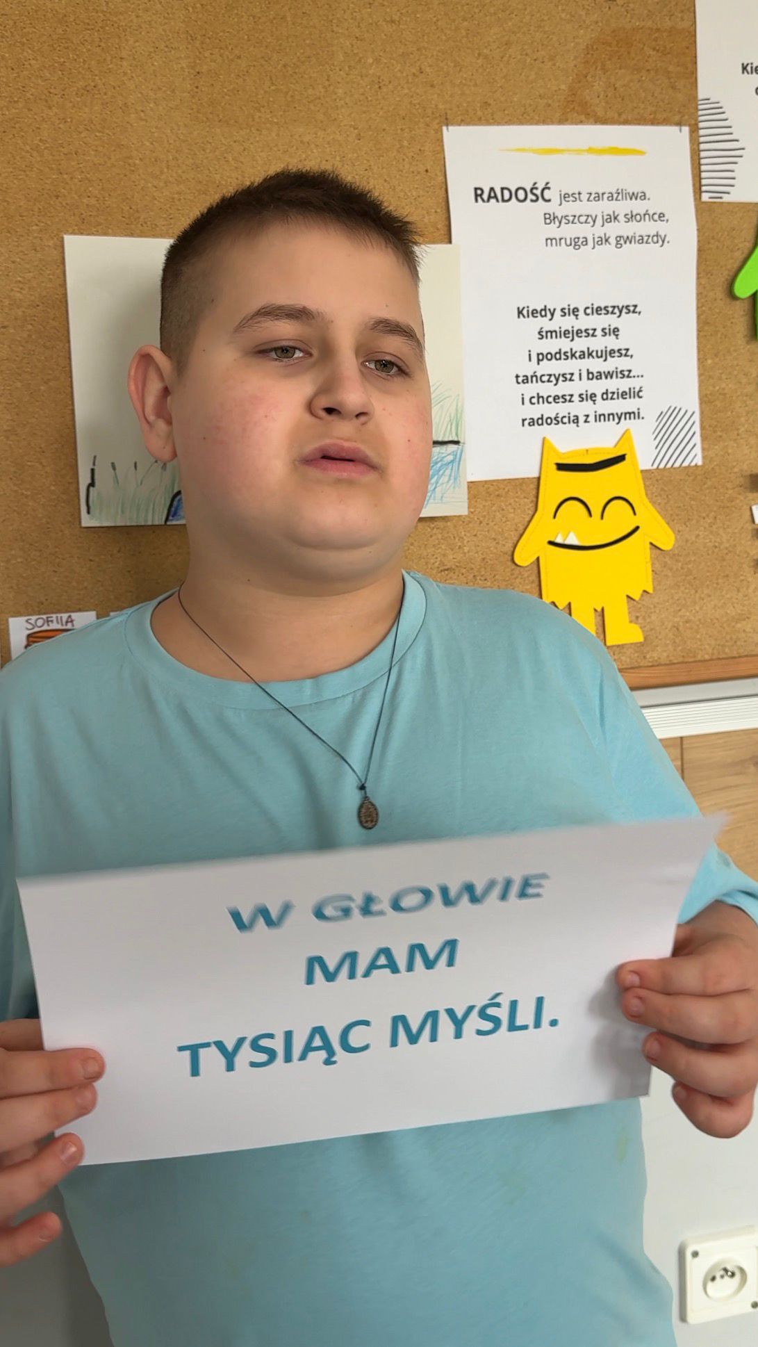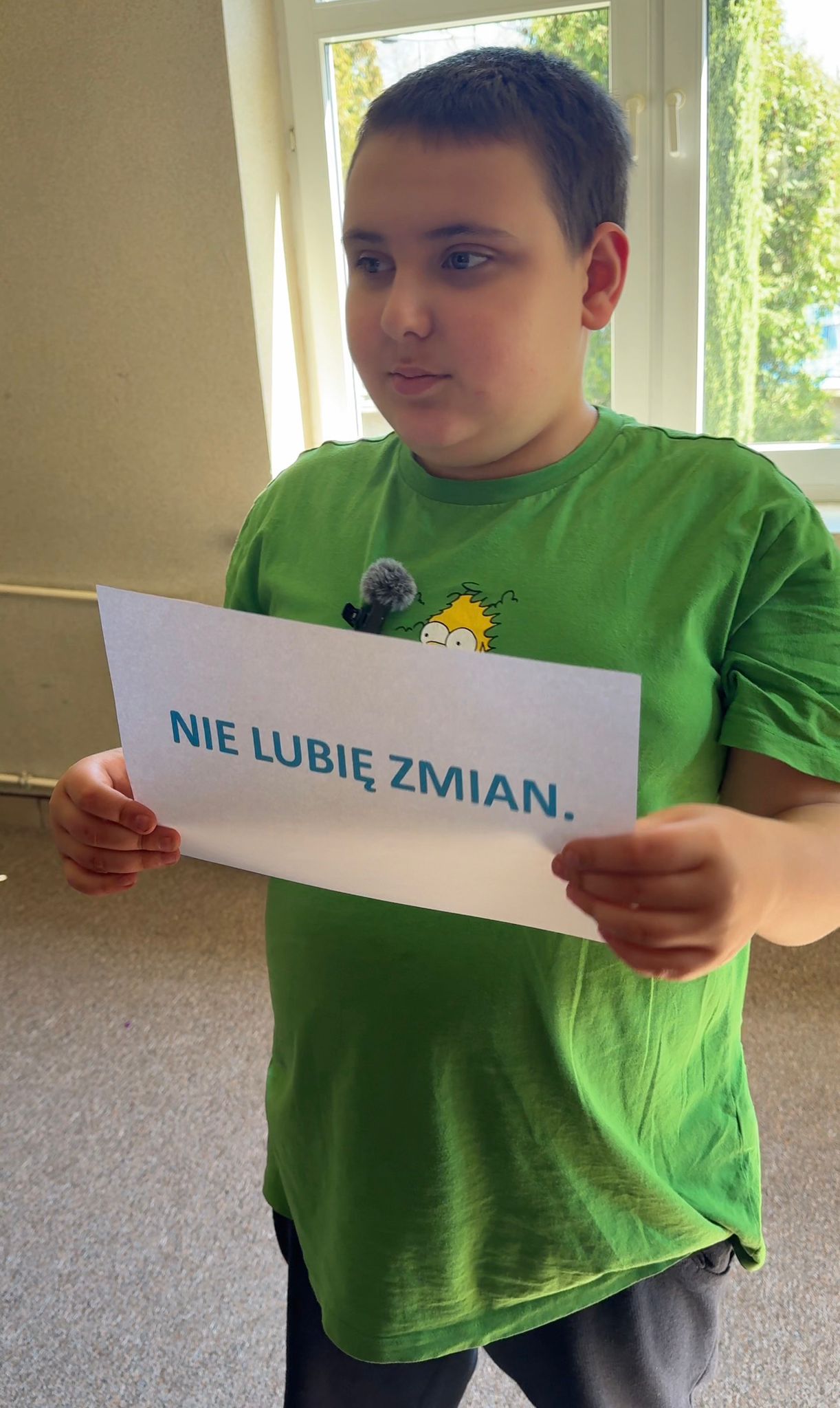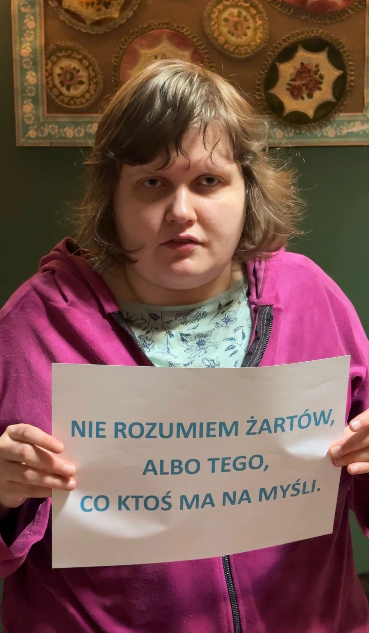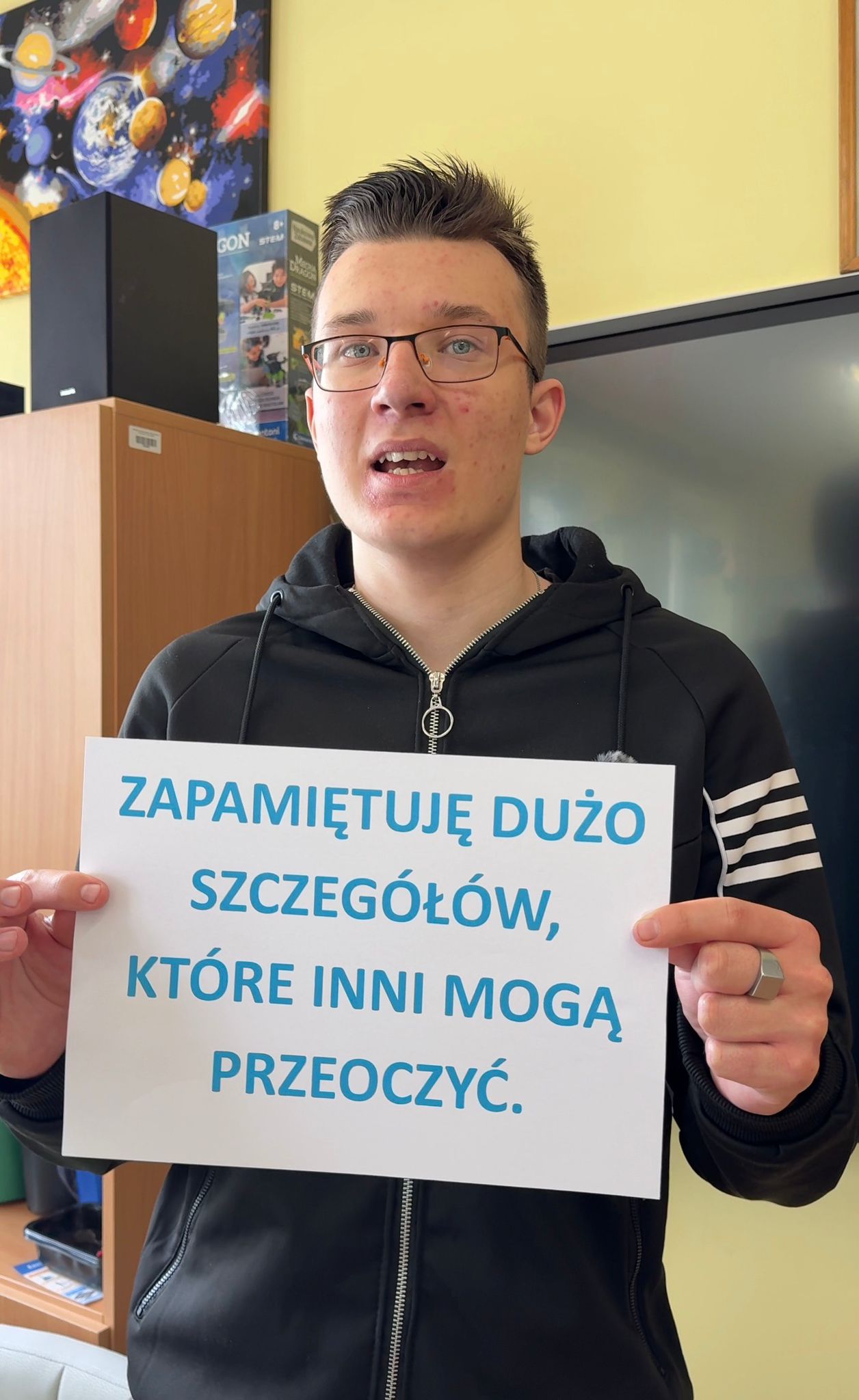 Uczniowie pozują do zdjęć prezentując hasła nawiązujące do funkcjonowania osób w spektrum autyzmu, np. "Jestem wrażliwy na bodźce", "Mój mózg działa trochę inaczej", "Nie rozumiem żartów albo tego co ktoś ma na myśli", "Nie śmiej się ze mnie, kiedy zachowuję się inaczej", "Mów do mnie krótko i jasno co masz na myśli", "Pomóż mi nawiązać relacje", "Nie lubię zmian"