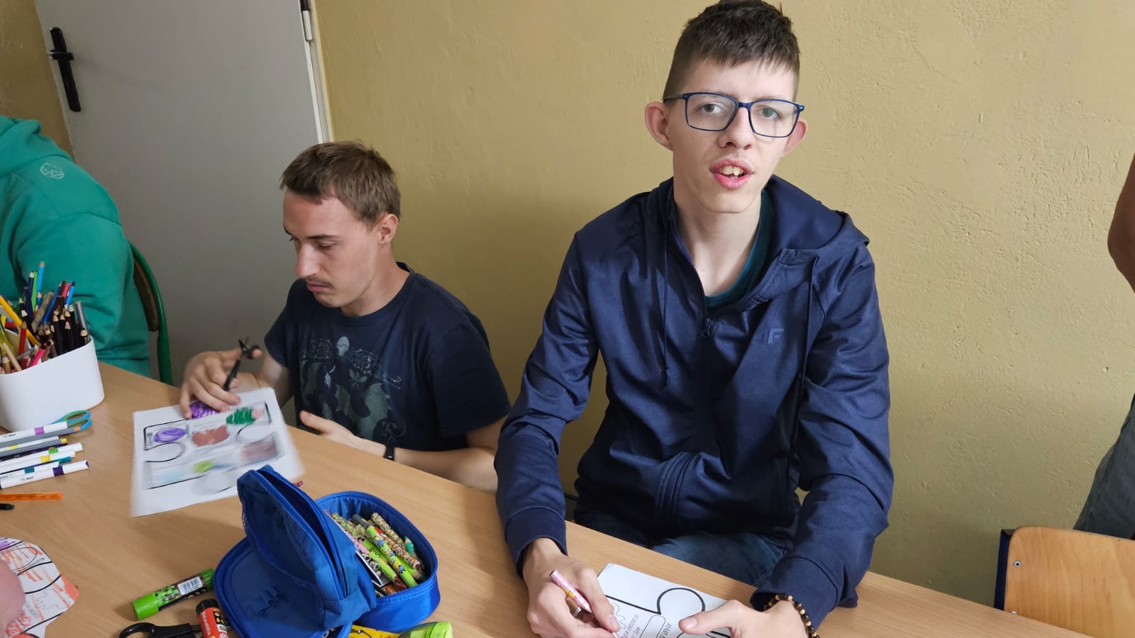 W ramach tygodnia relacji uczniowie SPdP uczestniczyli w warsztatach, na których wykonywali wspólnie plakat.