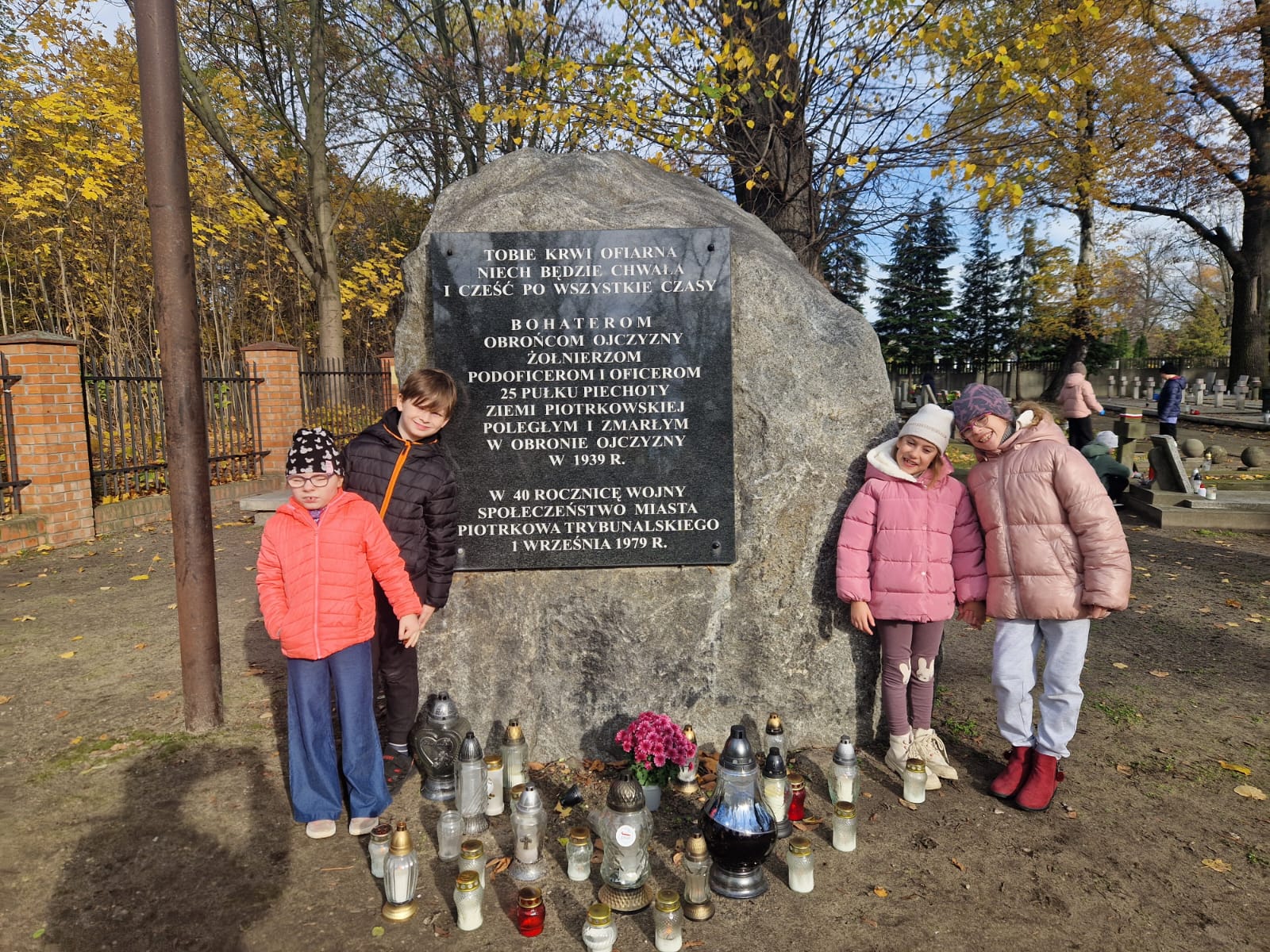 W okresie około Święta Zmarłych nasi uczniowie odwiedzali cmentarz oraz miejsca pamięci w  Piotrkowie  Trybunalskim. Przypomnieli sobie, jak należy zachowywać się, aby szanować pamięć zmarłych oraz nie zakłócać spokoju osób odwiedzających takie miejsca. Ponadto, odwiedzali historyczne groby oraz miejsca pamięci i razem z nauczycielami zapalali znicze. Była to cenna lekcja wychowania patriotycznego i obywatelskiego, ktora pozwoliła zrozumieć tradycje i zwyczaje związane z dniem  Wszystkich Świętych.