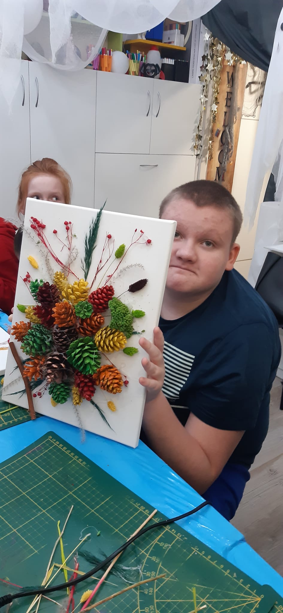 5 listopada uczniowie SP1 brali udział w kreatywnych zajęciaciach w Warsztatowni AniLab w Piotrkowie Trybunalskim - wyjątkowym miejscu pełnym pasji i kreatywności. Podczas zajęć każdy uczeń stworzył niepowtarzalny jesienny bukiet z szyszek. Każdy bukiet został umieszczony w formie obrazu na płótnie. Wszystkie obrazy są oryginalne i wyjątkowe.